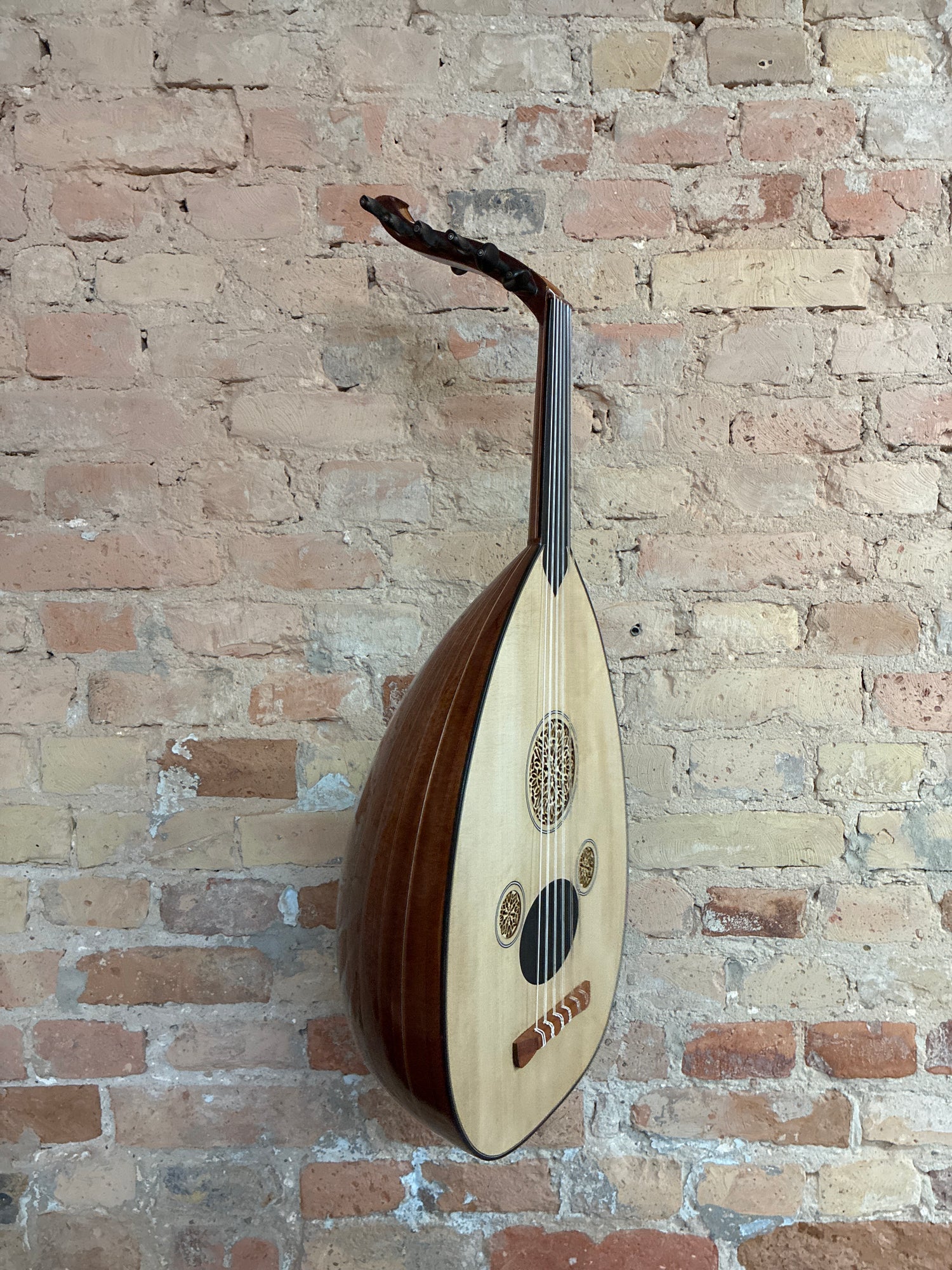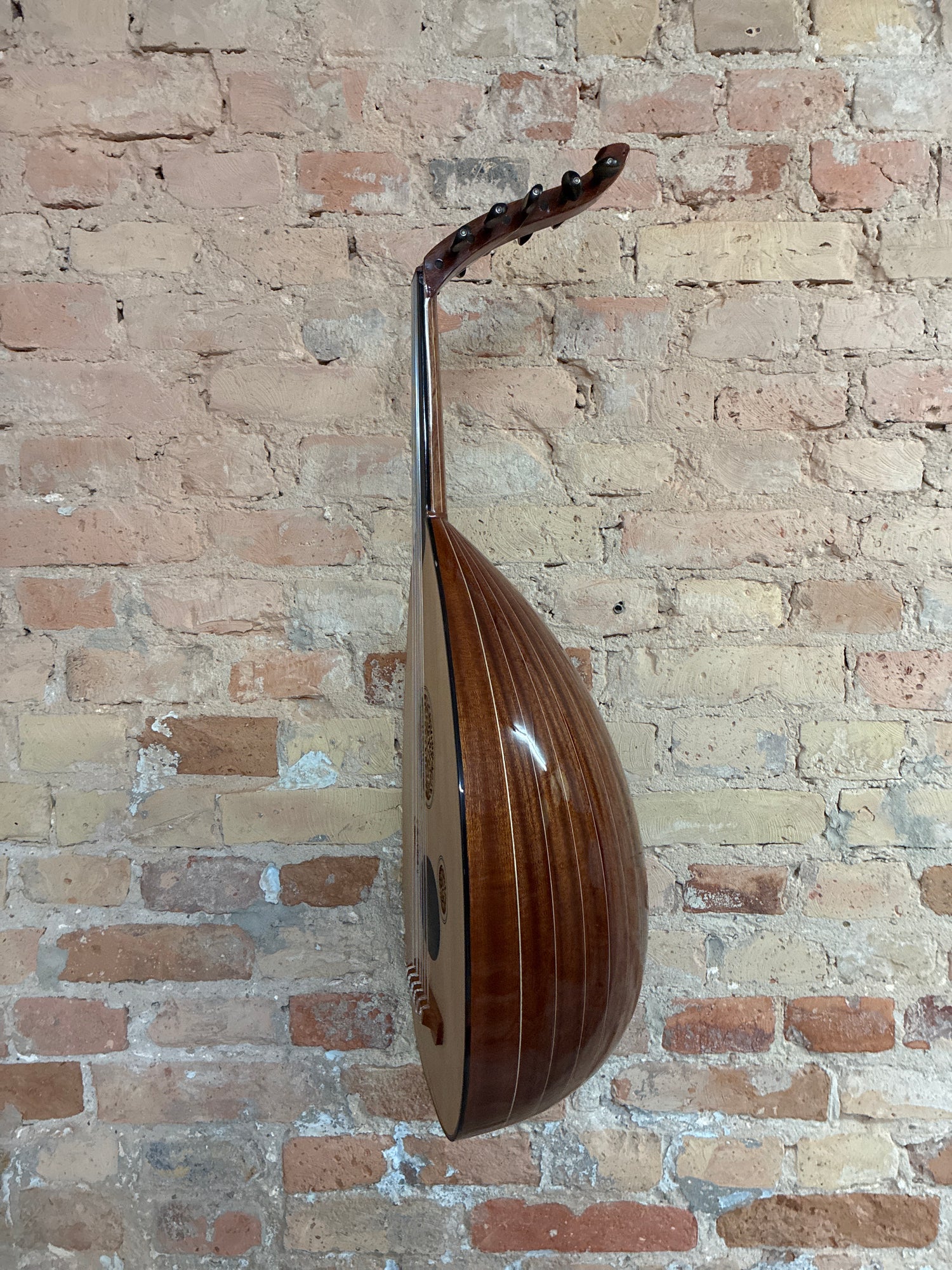 Unser Modell Oud 4/4 Top vereint Schönheit, Spielbarkeit und Handwerkskunst in einem atemberaubenden funktionalen Kunstwerk. Perfekt für Anfänger und erfahrene Musiker gleichermaßen, ist es so konzipiert, dass es auch bei langen Spielsitzungen bequem ist und einen satten, vollen Klang erzeugt, der sowohl als Soloinstrument als auch als Teil eines Ensembles hervorragend ist.