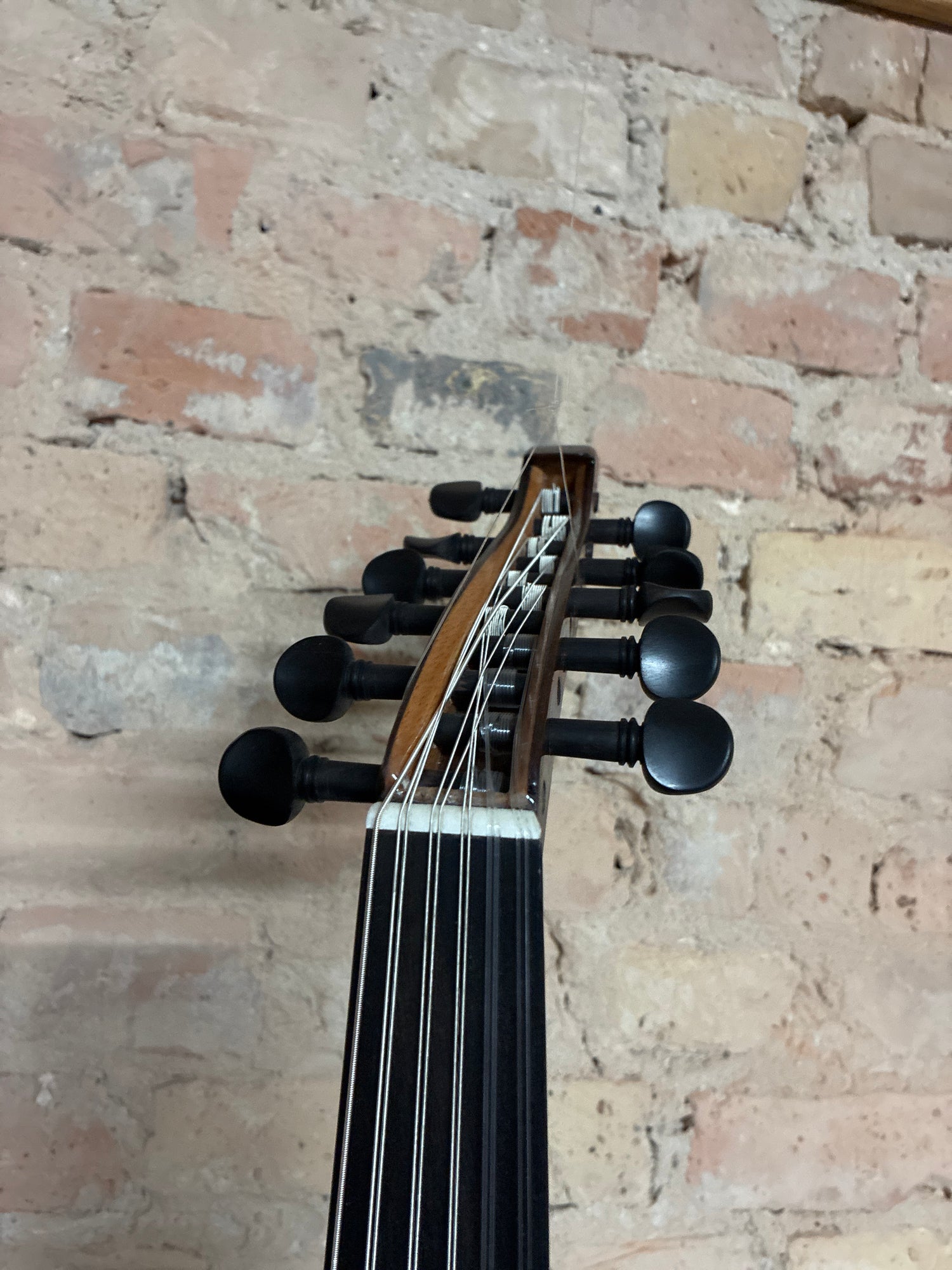 Unser Modell Oud 4/4 Top vereint Schönheit, Spielbarkeit und Handwerkskunst in einem atemberaubenden funktionalen Kunstwerk. Perfekt für Anfänger und erfahrene Musiker gleichermaßen, ist es so konzipiert, dass es auch bei langen Spielsitzungen bequem ist und einen satten, vollen Klang erzeugt, der sowohl als Soloinstrument als auch als Teil eines Ensembles hervorragend ist.